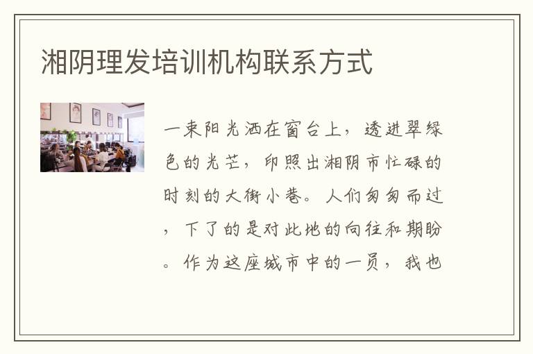 湘阴理发店培训机构,这是我心中绝不可以掸开的名字。从电视上的广告到身边朋友的推荐,它已经曾经的市区一道亮丽的风景线。对此一个憧憬剪头事业的年轻人可以说,能找到一家专业的培训机构是底气的来源,更是实践梦想的起点。