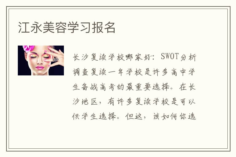 岳阳美容培训学校报名指南在现代社会中,美容行业发展快速,逐渐的人开始对美容行业出现浓郁的兴趣。如果你也其中一员,打算去学习美容技术并从事外贸具体工作,那就岳阳美容培训学校不是你的绝好选择。假设:你对美容行业充满热情假如你对美容行业充满热情,渴求自学各种美容技术,并将其发挥到实践中,岳阳美容培训学校将为我可以提供新华考资···