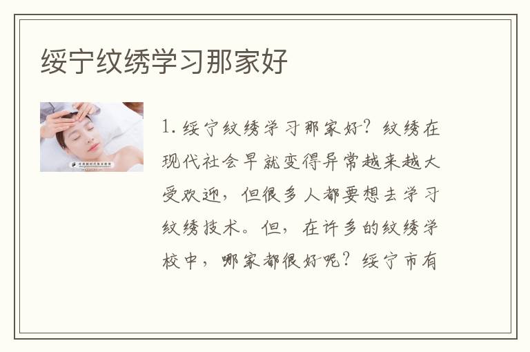 1.绥宁纹绣学习那家好?纹绣在现代社会早就变得异常越来越大受欢迎,但很多人都要想去学习纹绣技术。但,在许多的纹绣学校中,哪家都很好呢?绥宁市有很多纹绣学校供选择,只不过并不是每家学校都都能够需要提供高质量的教育。下面列一了一些问题,以好处你判断绥宁纹绣自学哪家好:2.是否有资质证书?在选择绥宁纹绣学校时,是需要要以保证学校具备什么相关的资质证书,比如营业执照和办学许可证。这个证书相关证···