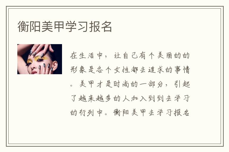 在生活中,让自己有个美丽的的形象是各个女性都去追求的事情。美甲才是时尚的一部分,引起了越来越多的人加入到到去学习的行列中。衡阳美甲去学习报名考试早开始了,另外三个爱美的女性,怎会错过太多这样的机会呢?让我们一起来所了解看看衡阳美甲自学可以报名吧!专业的···