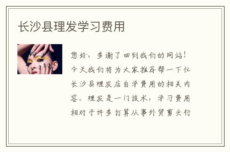 您好,多谢了回到我们的网站!今天我们将为大家推荐帮一下忙长沙县理发店自学费用的相关内容。理发是一门技术,学习费用相对于许多打算从事外贸剪头行业的人来讲是两个重要的参考因素。这一次,我们将能回答一些跪求长沙县理发店学费用的常见问题。问题一:长沙县理发学习费用是多少?答:长沙县剪头发学习费用因学校、课···