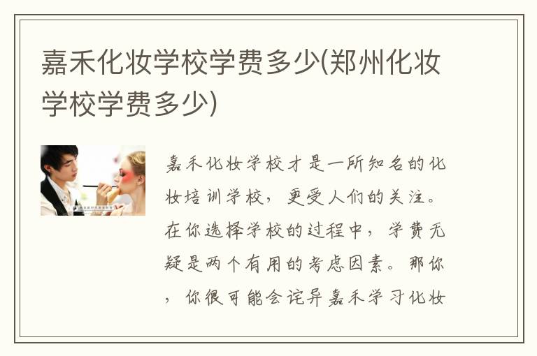 关于嘉禾化妆培训机构哪里好假设:你对化妆有浓重的兴趣,我希望也能专业的培训机构进阶自己的化妆技术和实践经验。方案:嘉禾化妆培训机构为你能提供了良好的学习环境和专业的教学团队,让你成为一名出色的化妆师。假设:你渴望获得一流的化妆技术和知识,提高自己的就业竞争力。方案:嘉禾化妆培训···