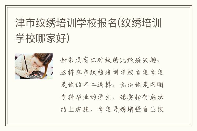 如果没有你对纹绣比较感兴趣,这样津市纹绣培训学校肯定肯定是你的不二选择。无论你是网刚专科毕业的学生、想要转行成功的上班族,肯定是想增强自己技能的家庭主妇,我们学校都需要提供最好的专业的培训课程和优质的教学环境。简单,津市纹绣培训学校具备另一支经验十分丰富、技术过硬的教师团队。我们的教师也是行业内专职的纹···