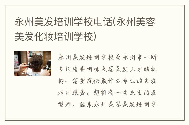 永州美发培训学校是永州市一所专门培养训练美容美发人才的机构,需要提供最什么专业的美发培训服务。想拥有一名杰出的发型师,就来永州美容美发培训学校吧!扎实的理论基础和十分丰富的实操经验,将助你快速曾经的行业中的佼佼者。···