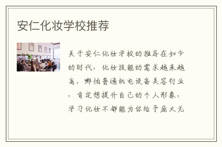 关于安仁化妆学校的推荐在如今的时代,化妆技能的需求越来越高。哪怕普通机电设备美容行业,肯定想提升自己的个人形象,学习化妆不都能为你给予庞大无比的好处。但这,在不少的化妆学校中,怎么你选一所适合的学校拥有了另一个问题。安仁化妆学校是一个愿意推荐的选择。假设:小班教学学化妆技巧是需要亲身实践和指导,才能唯一完全掌握。而安仁化妆学校提供给小班教学的优势。每个班级的人数都被控制在15人左右···