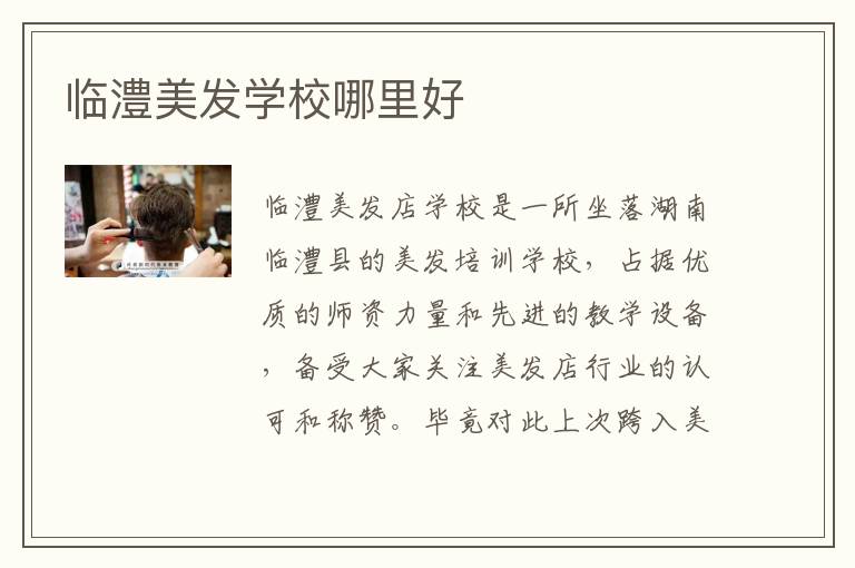 临澧美发店学校是一所坐落湖南临澧县的美发培训学校,占据优质的师资力量和先进的教学设备,备受大家关注美发店行业的认可和称赞。毕竟对此上次跨入美甲化妆行业的新手应该是对职业发型师而言,临澧美甲化妆学校都是一个非常好的选择。专业师资力量临澧美发学校强大另一支经验丰富、技术精湛的师资队伍。学校···